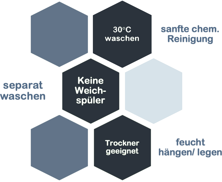 Ach, und bevor ich es vergesse: Bitte wascht mich mehrmals separat! Auf Grund meiner ökologischen Färbemethode, kommt es sonst – gerade am Anfang – zu Verfärbungen bei euren anderen Textilien. Wenn ihr mich in dunkleren Farben bestellt habt, ist dies umso wichtiger!“
